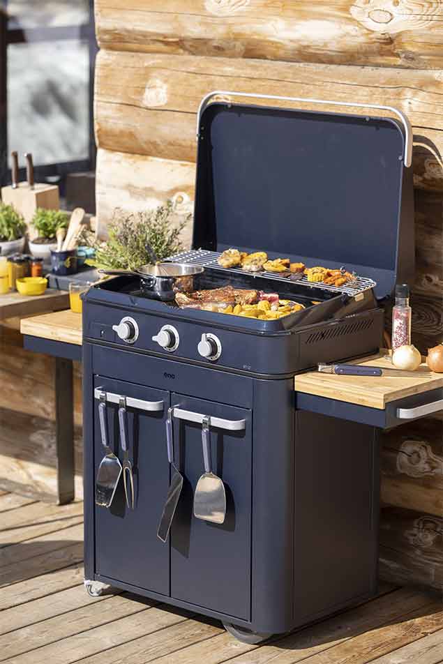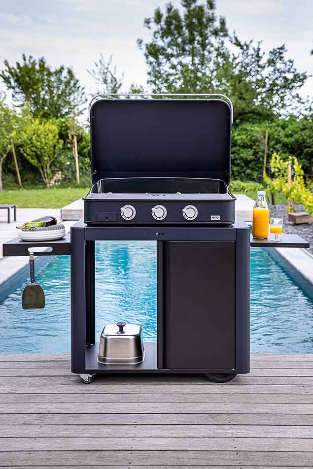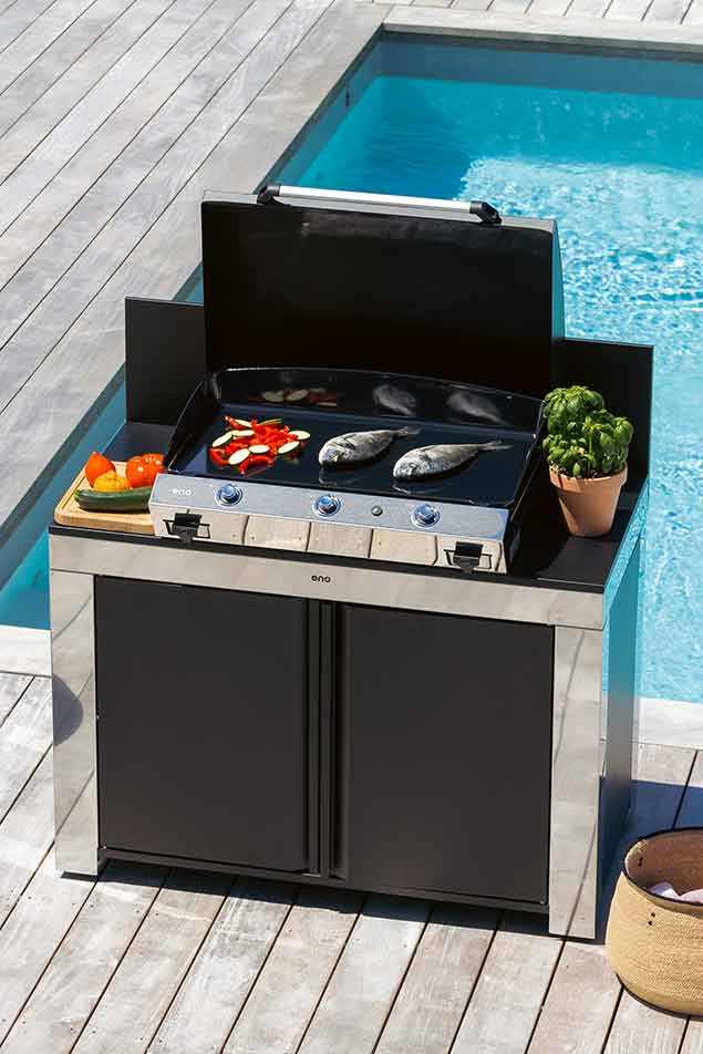 Discover all our must-haves: from our iconic Bergerac gas plancha to our outdoor kitchens through our trolleys, discover the whole world of ENO and outdoor equipment made in France